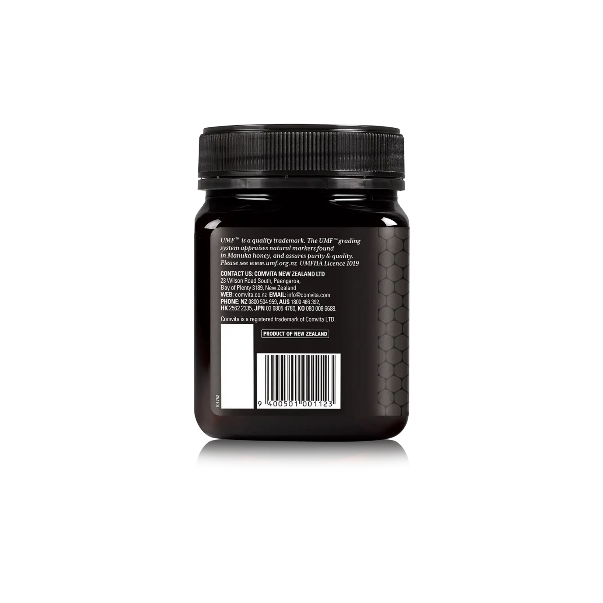 This is 100% pure UMF™ 5+ New Zealand Mānuka honey. Taken from the wild, unpasteurised, halal, kosher and certified gluten-free. Pure goodness.