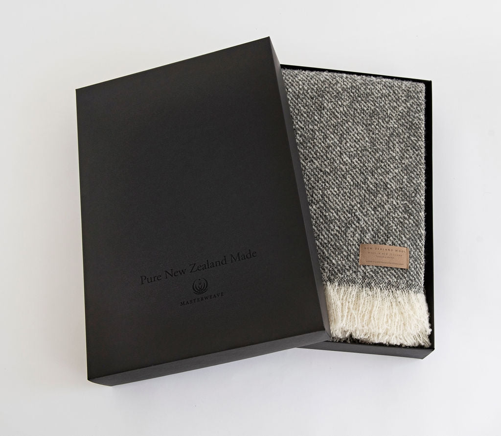 Made from New Zealand grown wool, this boucle yarn provides incredible softness. Presented in a stylish black gift box. Embossed with ‘Pure New Zealand Made’