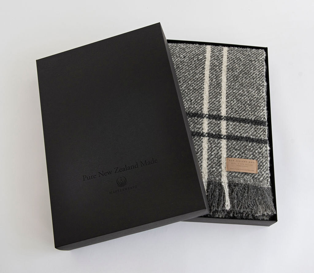 Made from New Zealand grown wool, this boucle yarn provides incredible softness. Presented in a stylish black gift box. Embossed with ‘Pure New Zealand Made’